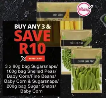 Now on special at Checkers: Sugarsnaps/ Shelled Peas/ Baby Corn/ Fine Beans/ Baby Corn & Sugarsnaps/ Sugar Snaps/ Baby Corn ✅ Valid from 8-12 to 28-12.