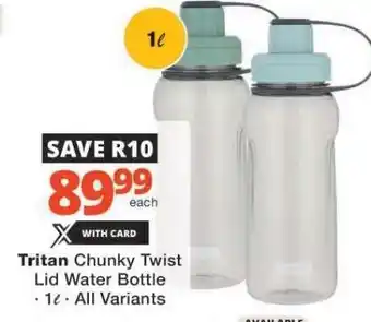 Tritan Chunky Twist Lid Water Bottle offers and online specials, directly from Checkers