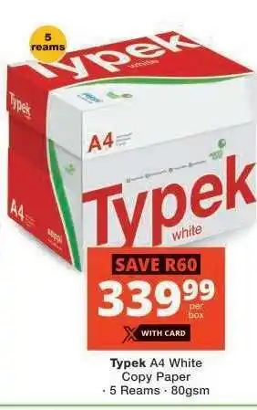 Typek A4 White Copy Paper offers and online specials, directly from Checkers
