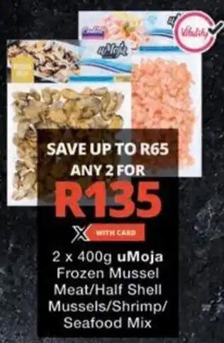 uMoja Frozen Mussel Meat/ Half Shell Mussels/ Shrimp/ Seafood Mix promotion at Checkers