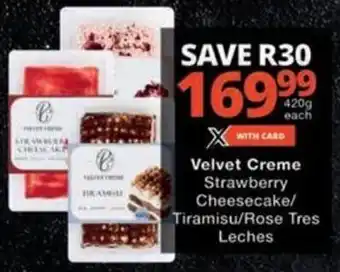 Velvet Creme Strawberry Cheesecake/ Tiramisu/ Rose Tres Leches Offer at Checkers