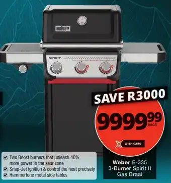 Now on special at Checkers: Weber E-335 3-Burner Spirit II Gas Braai ✅ Valid from 5-01 to 25-01.