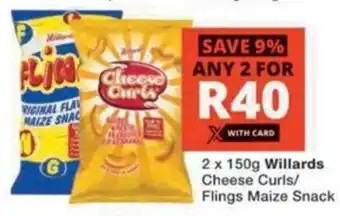 Willards Cheese Curls/ Flings Maize Snack promotion at Checkers