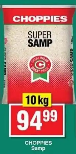 Choppies offers a wide collection of products, besides the Choppies Samp. Keep an eye on the weekly Choppies catalogue to find the best specials and promotions. Besides Choppies Samp, you can also find the following offers: Iwisa Samp, Iwisa no.1 samp & Champion Samp.