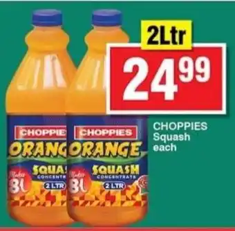Choppies offers a wide collection of products, besides the Choppies Squash. Keep an eye on the weekly Choppies catalogue to find the best specials and promotions. Besides Choppies Squash, you can also find the following offers: Choppies Rice, Choppies Smoothies & Choppies Samp.