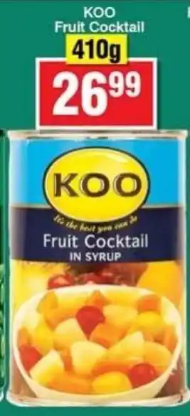 This special is available in various stores, view all products to get the cheapest KOO Fruit Cocktail. If you'd like to find out whether this product has a bigger discount in another store, check the category 'Grocery stores'. You may also find these specials interesting: Koo Fruit Cocktail, Koo Fruit Cocktail & Koo Fruit Cocktail.