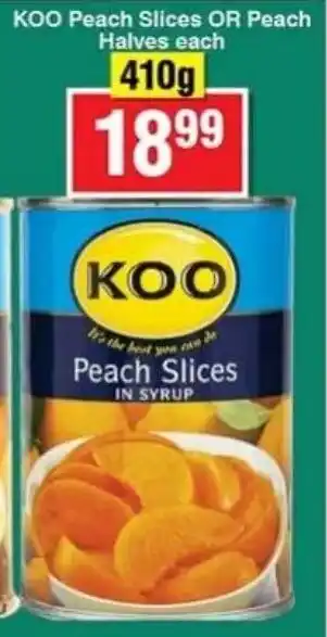 KOO Peach Slices OR Peach Halves offers and online specials, directly from Choppies