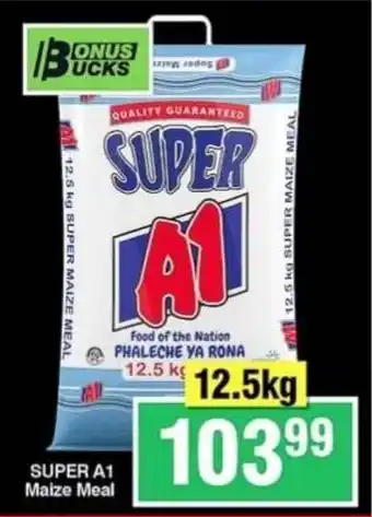 This special is available in various stores, view all products to get the cheapest SUPER A1 Maize Meal. If you'd like to find out whether this product has a bigger discount in another store, check the category 'Grocery stores'. You may also find these specials interesting: SUPER A1 Super Maize Meal, Super sun super maize meal & Super white super maize meal.