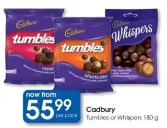 Now on special at Clicks: Cadbury Tumbles or Whispers ✅ Valid from 17-12 to 29-12.