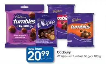 Now on special at Clicks: Cadbury Whispers or Tumbles ✅ Valid from 30-12 to 12-01.