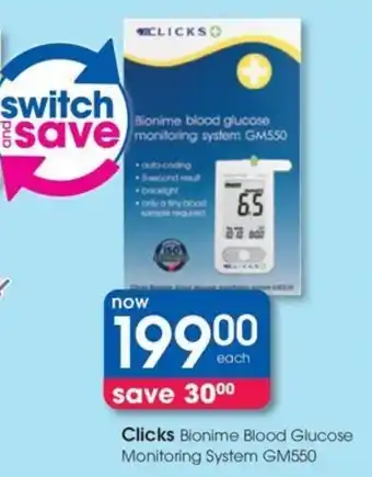 Now on special at Clicks: Clicks Bionime Blood Glucose Monitoring System GM550 ✅ Valid from 30-12 to 21-01.