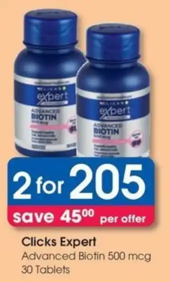 Now on special at Clicks: Clicks Expert Advanced Biotin 500 mcg ✅ Valid from 30-12 to 21-01.
