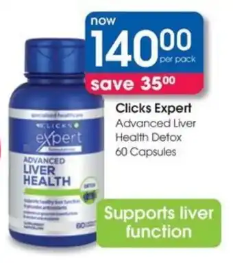 Now on special at Clicks: Clicks Expert Advanced Liver Health Detox ✅ Valid from 30-12 to 21-01.