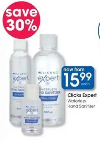 Clicks Expert Waterless Hand Sanitiser promotion at Clicks
