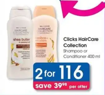 Clicks HairCare Collection Shampoo or Conditioner Offer at Clicks