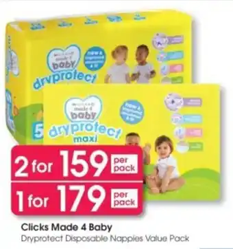 Clicks Made 4 Baby Dryprotect Disposable Nappies Value Pack Discount at Clicks