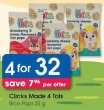 Clicks Made 4 Tots Rice Pops 4 x 22 g
