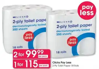 Clicks Pay Less 2-Ply Toilet Paper Discount at Clicks