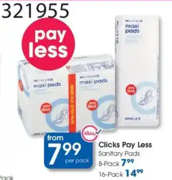 Clicks Pay Less Sanitary Pads promotion at Clicks