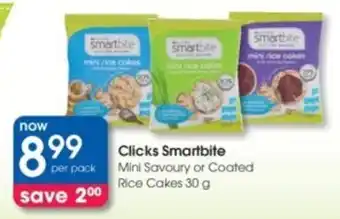 Clicks Smartbite Mini Savoury or Coated Rice Cakes promotion at Clicks