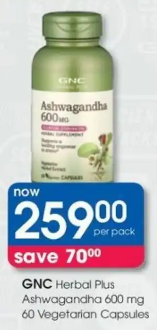 GNC Herbal Plus Ashwagandha 600 mg offers and online specials, directly from Clicks