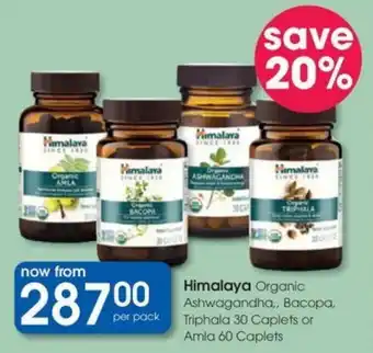 Himalaya Organic Ashwagandha, Bacopa, Triphala Caplets or Amla Caplets offers and online specials, directly from Clicks