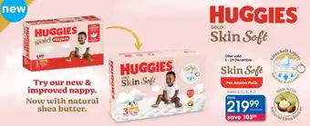 Now on special at Clicks: Huggies Gold Skin Soft ✅ Valid from 17-12 to 29-12.