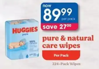This special is available in various stores, view all products to get the cheapest Huggies pure & natural care wipes. If you'd like to find out whether this product has a bigger discount in another store, check the category 'Beauty & Pharmacy'. You may also find these specials interesting: Huggies Baby Wipes Pure OR Natural Care, Huggies Baby Wipes Pure OR Natural Care 4-Pack & Huggies Pure Or Natural Care Baby Wipes-Per Pack.