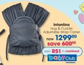 Now on special at Clicks: Infantino Hug & Cuddle Adjustable Wrap Carrier ✅ Valid from 17-12 to 29-12.