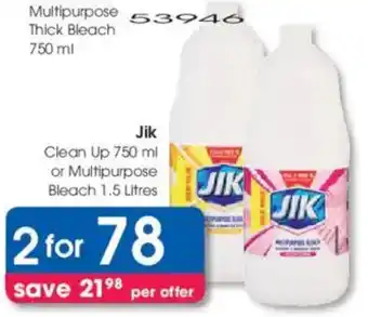 Jik Clean Up or Multipurpose Bleach Offer at Clicks
