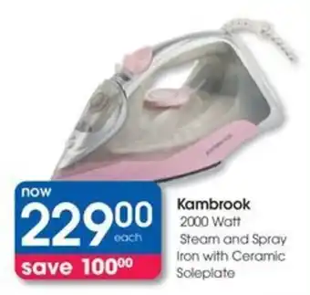 Kambrook 2000 Watt Steam and Spray Iron with Ceramic Soleplate Offer at Clicks