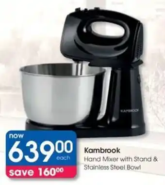 The Kambrook Hand Mixer with Stand & Stainless Steel Bowl is now available with a discount at Clicks. On this page, you’ll find everything about the current price, promotion conditions, and how long the offer is valid. Also explore other offers and promotions for Kambrook Hand Mixer with Stand & Stainless Steel Bowl to make a smart and cost-effective choice.