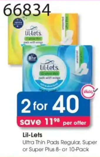 Lil-Lets Ultra Thin Pads Regular, Super or Super Plus promotion at Clicks