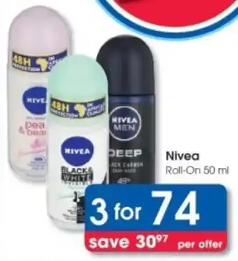 The Nivea Roll-On is now available with a discount at Clicks. On this page, you’ll find everything about the current price, promotion conditions, and how long the offer is valid. Also explore other offers and promotions for Nivea Roll-On to make a smart and cost-effective choice.