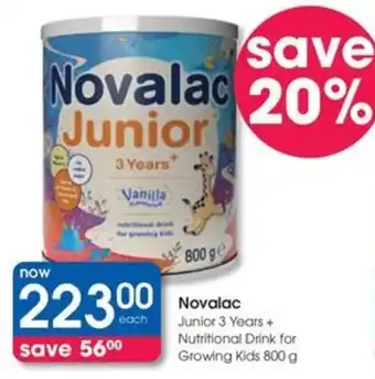 Now on special at Clicks: Novalac Junior 3 Years + Nutritional Drink for Growing Kids ✅ Valid from 30-12 to 12-01.