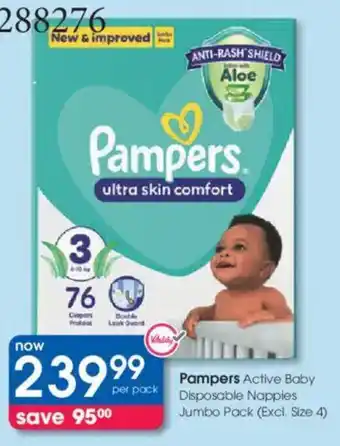 Pampers Active Baby Disposable Nappies Jumbo Pack offers and online specials, directly from Clicks