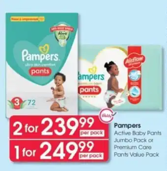 Pampers Active Baby Pants Jumbo Pack or Premium Care Pants Value Pack offers and online specials, directly from Clicks