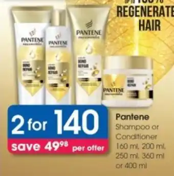This special is available in various stores, view all products to get the cheapest Pantene Shampoo or Conditioner. If you'd like to find out whether this product has a bigger discount in another store, check the category 'Beauty & Pharmacy'. You may also find these specials interesting: Pantene Shampoo Or Conditioner 160ml/250ml/360ml/400ml-For 2, PANTENE Shampoo or Conditioner & Pantene Shampoo OR Conditioner Assorted.