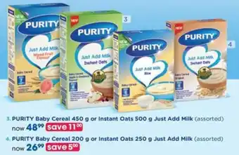 PURITY Baby Cereal or Instant Oats Just Add Milk promotion at Clicks