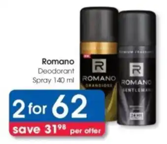Romano Deodorant Spray offers and online specials, directly from Clicks