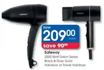 Safeway 2000 Watt Salon Series Black & Rose Gold Hairdryer or Travel Hairdryer Discount at Clicks