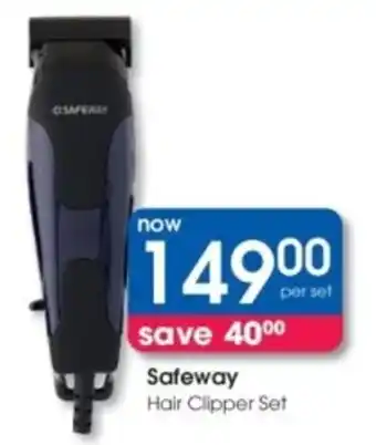 The Safeway Hair Clipper Set is available this week at Clicks as part of a special promotion. On this page, you’ll find everything about the promotional price, terms, and current specials. Browse related promotions and offers for Safeway Hair Clipper Set to make sure you don’t miss out.