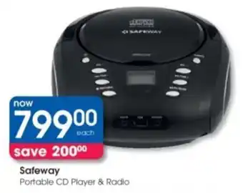 This special is available in various stores, view all products to get the cheapest Safeway Portable CD Player & Radio. If you'd like to find out whether this product has a bigger discount in another store, check the category 'Beauty & Pharmacy'. You may also find these specials interesting: Safeway Radio Alarm Clock, Star Sound Radio Head, 7 Double Din Multimedia Player & Pioneer Radio.