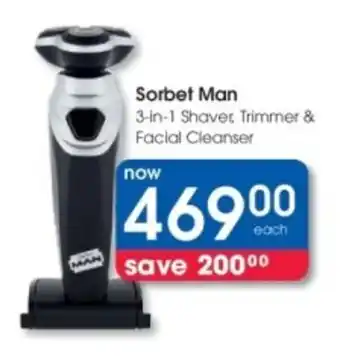 Sorbet Man 3-in-1 Shaver Trimmer & Facial Cleanser Discount at Clicks