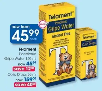 Telament Paediatric Gripe Water offers and online specials, directly from Clicks