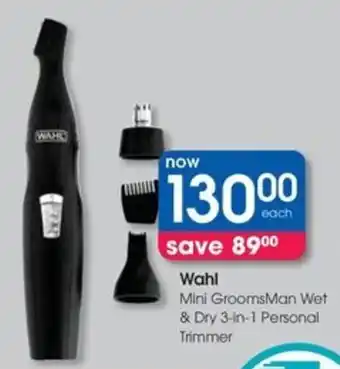 Wahl Mini GroomsMan Wet & Dry 3-in-1 Personal Trimmer promotion at Clicks