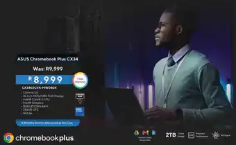 This ASUS Chromebook Plus CX34 is currently available as part of a special promotion at Computer Mania. Be sure to check the current promotions filled with competitive prices and deals. You can order ASUS Chromebook Plus CX34 online via Computer Mania website or get it at the best available price. Cataloguespecials.co.za collects the most relevant ASUS Chromebook Plus CX34 offers and specials for you. Want to be notified first? Click the bell icon to receive a free alert when the product is part of a new promotion or available again.