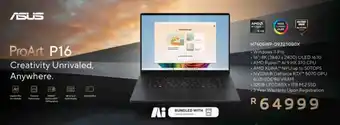 This ASUS ProArt P16 is currently available as part of a special promotion at Computer Mania. Be sure to check the current promotions filled with competitive prices and deals. You can order ASUS ProArt P16 online via Computer Mania website or get it at the best available price. Cataloguespecials.co.za collects the most relevant ASUS ProArt P16 offers and specials for you. Want to be notified first? Click the bell icon to receive a free alert when the product is part of a new promotion or available again.