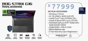 This special is available in various stores, view all products to get the cheapest Asus ROG Strix G16. If you'd like to find out whether this product has a bigger discount in another store, check the category 'Electronics'. You may also find these specials interesting: Asus ROG Strix G18, Asus ROG Strix G18 & Asus ROG Strix G16.