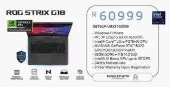 This special is available in various stores, view all products to get the cheapest Asus ROG Strix G18. If you'd like to find out whether this product has a bigger discount in another store, check the category 'Electronics'. You may also find these specials interesting: Asus ROG Strix G18, Asus ROG Strix G16 & Asus ROG Strix G16.